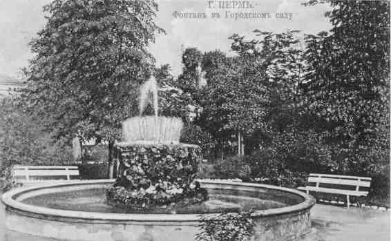 Фонтан около оперного театра в Театральном саду был построен по указу городских властей в 1907 году. В пермских архивах сохранились газеты тех лет, в которых упоминается об этом фонтане.