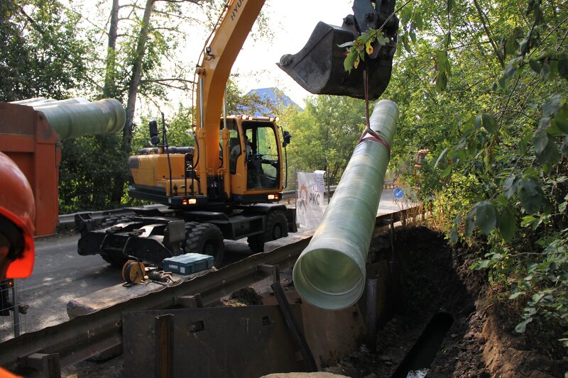 До середины октября 2022 года подрядная организация должна завершить первый этап реконструкции – заменить 1 км 100 метров сети водоотведения и 40 колодцев. Ветхая труба обновляется трубой из современного материала - стеклокомпозита. Ремонт проводят, используя метод санации - практически без раскопок. Через колодцы и котлованы обеспечивается доступ к коллектору, который чистят от мусора и промывают с помощью с помощью спецтехники – каналопромывочной машины, которая подает воду под давлением примерно 100 атмосфер. Это необходимо для того чтобы внутри старой трубы протолкнуть новую, меньшим диаметром. Там, где это невозможно сделать, например, на участках где коллектор разрушился полностью или где труба имеет угол поворота, замена проводится открытым способом.