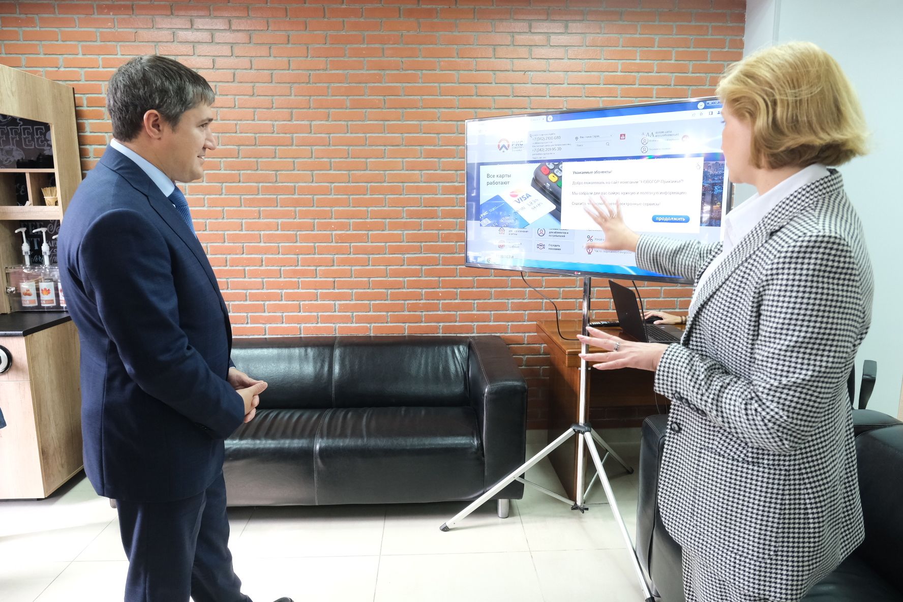 Познакомившись с работой нового офиса «НОВОГОРа», Дмитрий Махонин убедился, что компания предусмотрела разные варианты общения с клиентами. В центре единого обслуживания свои вопросы могут решить те, кто не владеет цифровыми технологиями и предпочитает взаимодействовать очно. При этом губернатор Пермского края отметил, что компания успешно развивает дистанционные способы взаимоотношений с клиентами и большинство вопросов решаются удаленно с помощью сайта, личного кабинета, телефона.