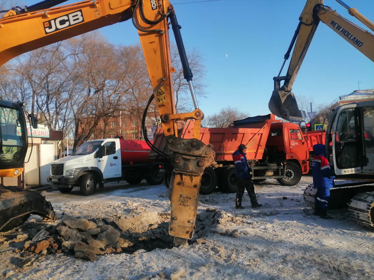 В Благовещенске специалисты устраняли засоры, очищали участки от наледи и, по возможности, приходили на помощь коллегам. Так в районе улиц Театральная и Степная случился порыв. Дефект был выявлен на ведомственных сетях водоснабжения. Специалисты АКС не оставили горожан в сложной ситуации и очистили проезжую часть от наледи. 31 декабря на водозаборе Северный произошел сбой на сетях диаметром 800 мм. Специалисты АКС сработали оперативно, переключили подачу воды на другие источники и водоводы, после чего приступили к устранению дефекта. После полуночи давление в водопроводной сети города Благовещенска полностью стабилизировалось.
