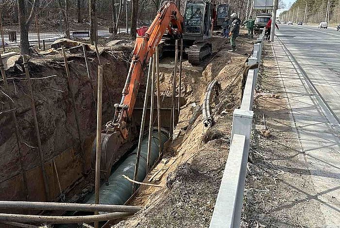 Поток сточных вод, который самотеком идет по этому коллектору, продолжает поступать на насосную станцию. Следующим этапом обновят участок коллектора протяженностью около 90 метров под Шоссе Космонавтов от перекрестка с ул. Подлесная. Специалисты здесь будут использовать ту же технологию – санацию существующего железобетонного коллектора диаметром 1,2 метра стеклокомпозитной трубой меньшего диаметра, что позволит не вскрывать проезжую часть. Затем будет обновляться сеть водоотведения, проходящая под шоссе в сторону ул. Советской армии.